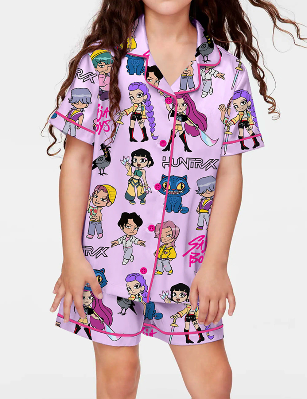 • Huntrix Demon Hunters Silky Satin Pajama Set For Kids