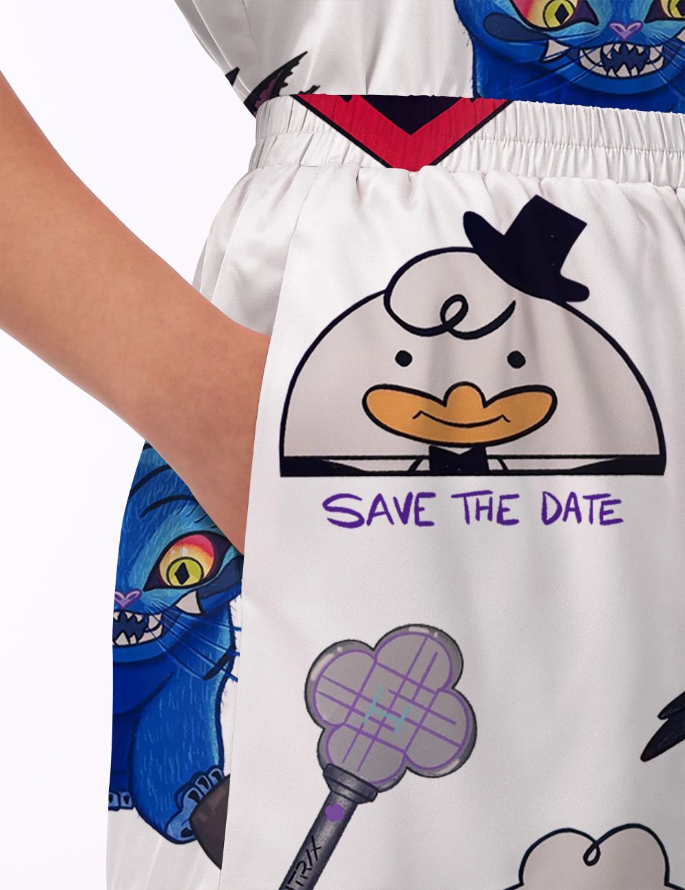 • Coquette Cartoon Reading Satin Pajama Set For Women