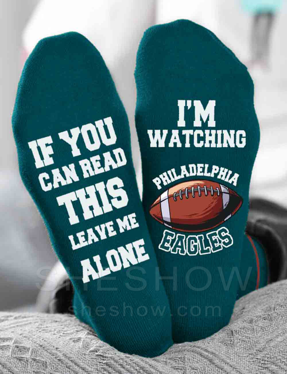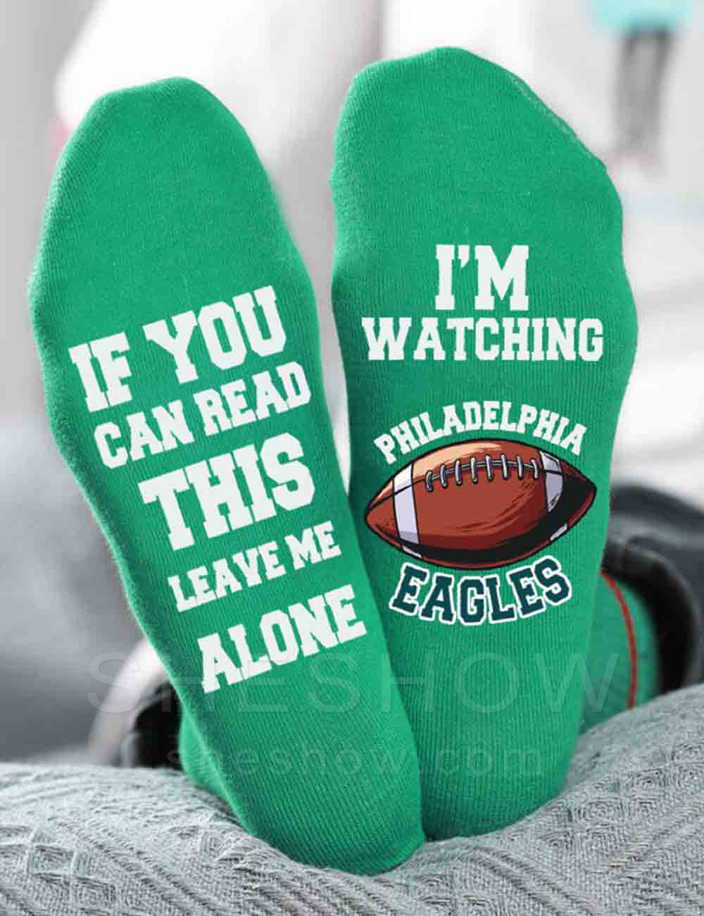 • Foot graphic reads "IF YOU CAN READ THIS LEAVE ME ALONE, I'M WATCHING PHILADELPHIA EAGLES"