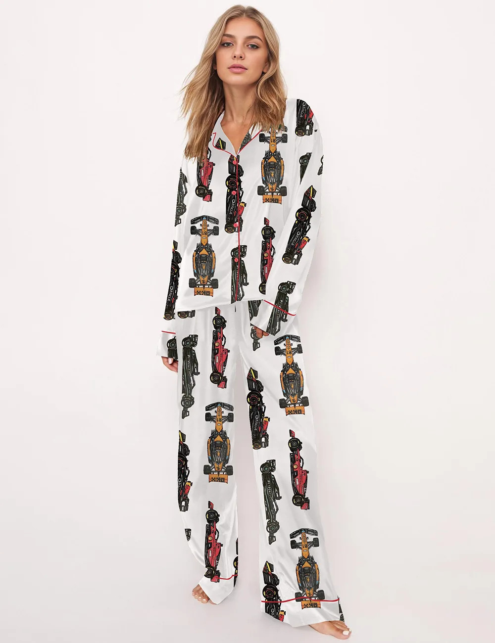Racing And Trip Silky Satin Pajama Set For Women